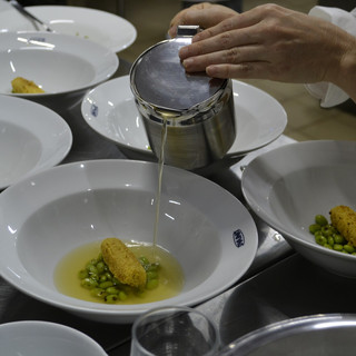 Na oficina no Pantanal Cozinha Brasil ensinou o preparo de pratos inspirados na Mata Atlântica, como uma banana caiçara, uma bananinha ouro, envolta em farinha d’água crocante servida sobre uma ‘cama’ de edamames (um preparado com grãos de soja verde), acompanhado de um caldo de peixe translúcido, perfumado e muito saboroso, que “acorda” os sabores e faz toda a diferença no prato.