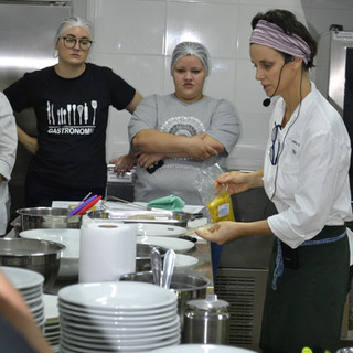 Helena destacou ainda a importância da valorização da equipe. “O Mani não sou eu, é a equipe, as pessoas que trabalham com a gente têm suas histórias e a cozinha vai ficando cada vez mais rica com elas”. Ela diz acreditar muito na história das pessoas e ressaltou a importância de se conectar com o que elas estão fazendo. “Receitas são para serem compartilhadas”, disse e explicou o preparo de outros pratos.
